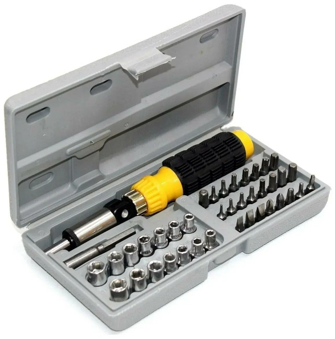 Unealtă profesională și fiabilă, creată pentru cei care apreciază calitatea, confortul și funcționalitatea în fiecare detaliu. Șurubelnița reversibilă cu set de capete tubulare și biți va deveni ajutorul dumneavoastră indispensabil acasă, în garaj, la cabană și chiar în călătorii.